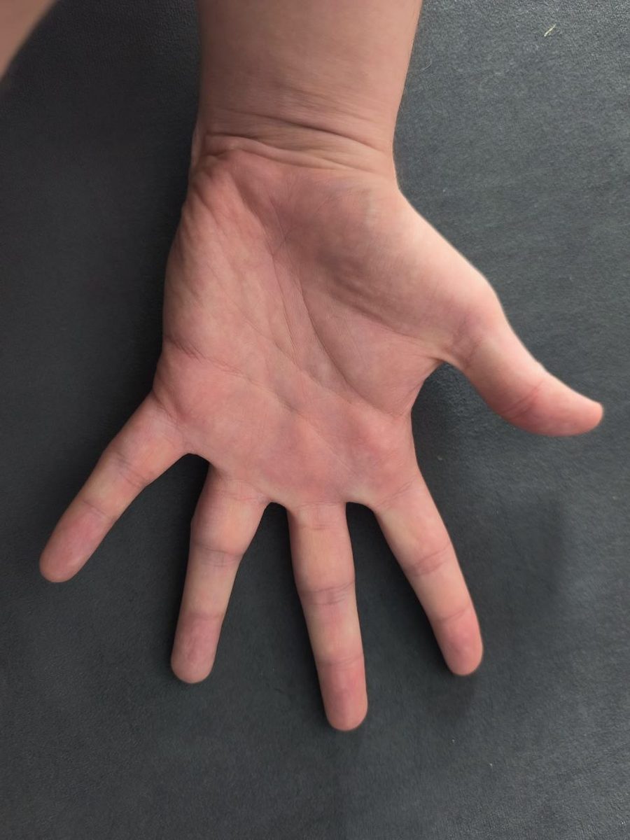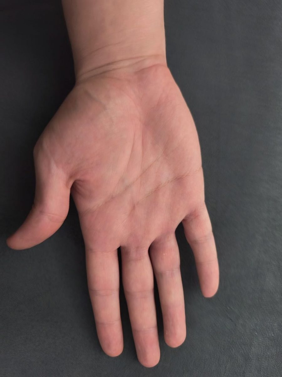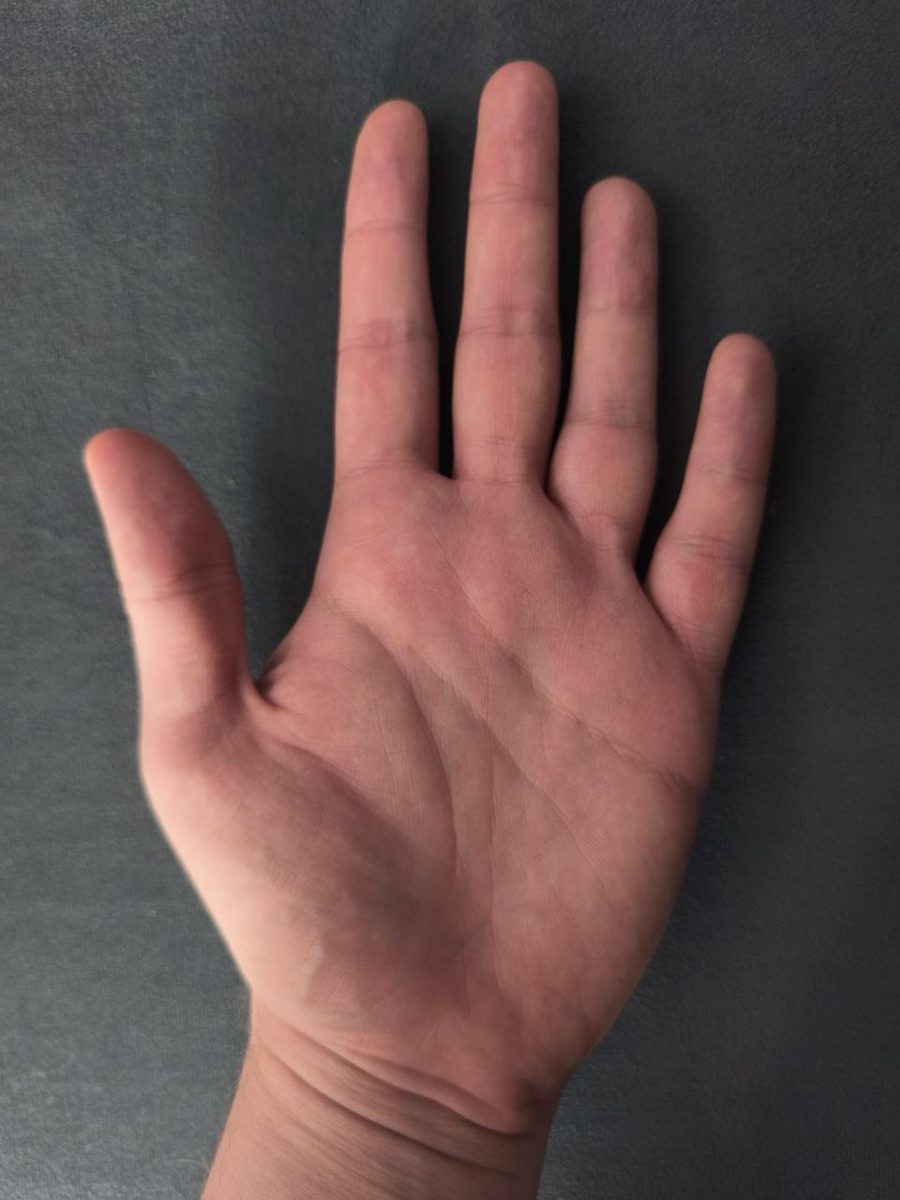 Сделайте чёткие снимки обеих рук при дневном свете. Ладонь полностью в кадре, пальцы расправлены.